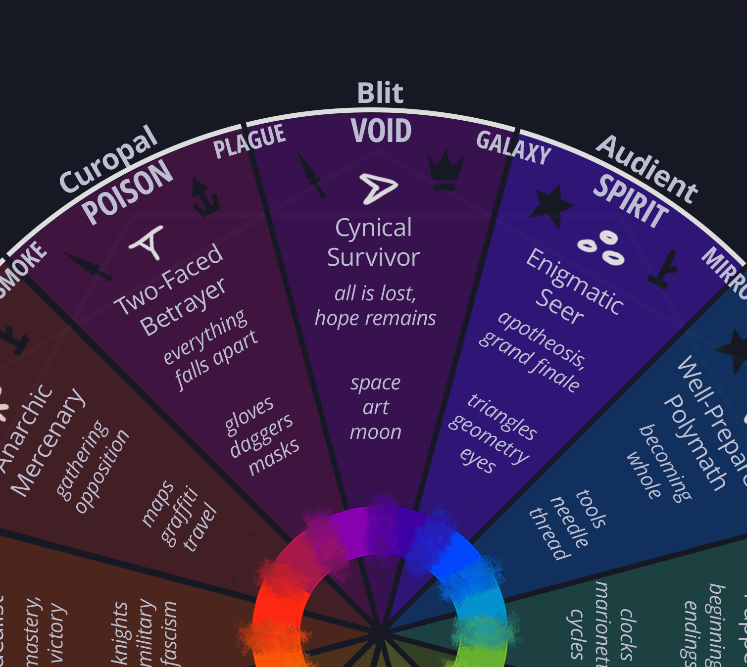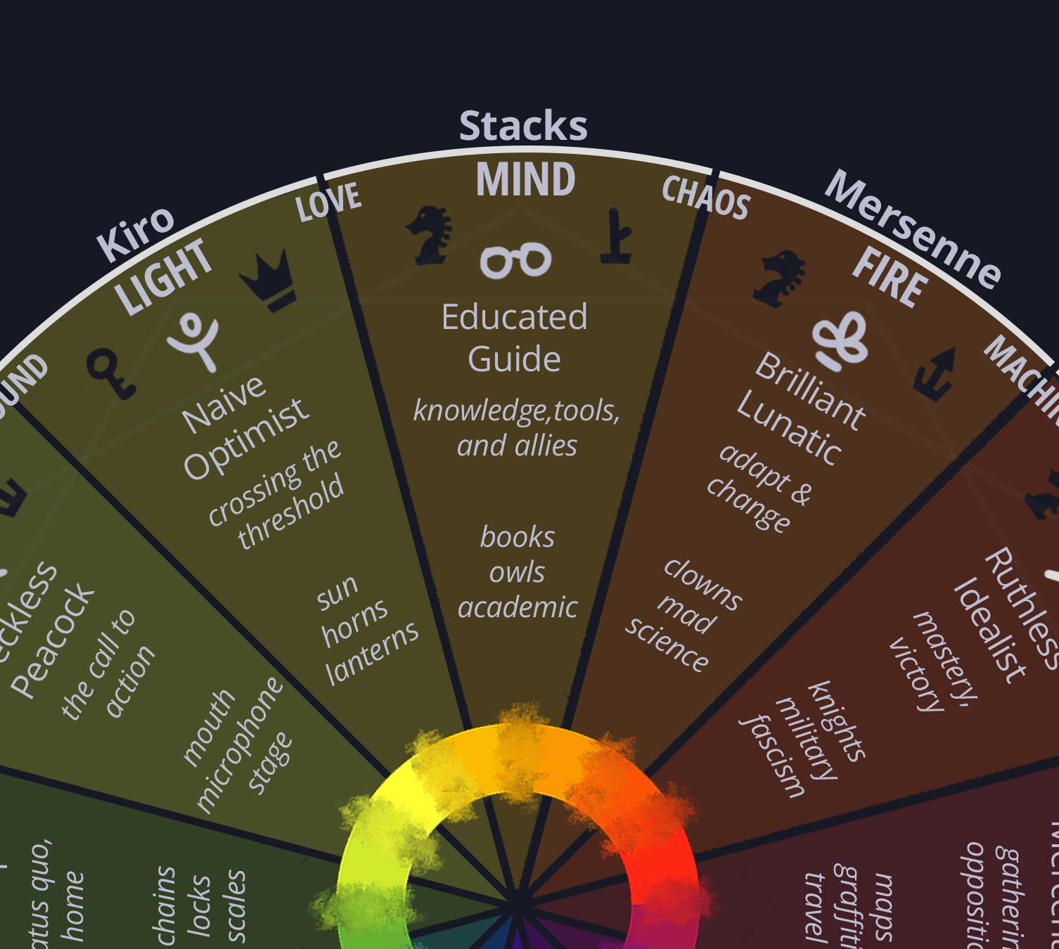 - Then, with "the complete wheel" and indexed examples, per archetype, of what each archetype looks like with all lenses applied.