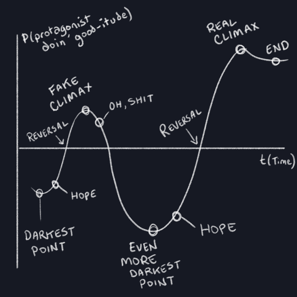 - a role in the story: as a vector for "darkest before the dawn" moments.